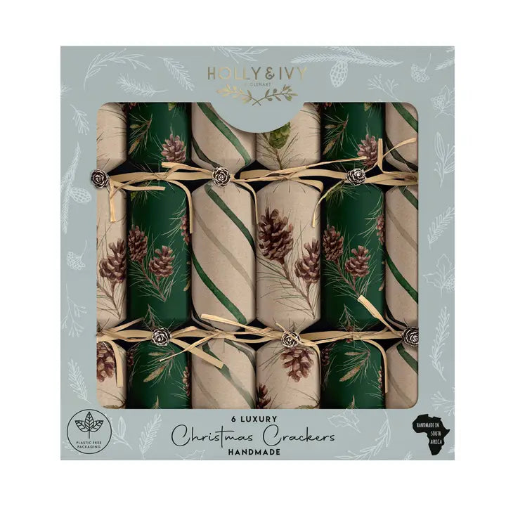 Luxury Kraft Pinecone Holiday Crackers Box of 6